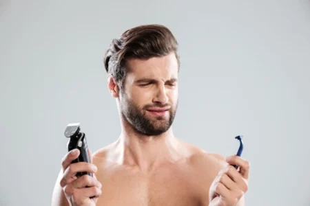 The process starts with trimming, as pro male pornstars aren’t recklessly going straight in with a razor on long hair. As many of us have learned ourselves, doing that may even lead to a small disaster. It’s the perfect recipe for irritation, minor razor cuts, and clogged blades —super annoying. Instead, performers in male porn movies tend to first use electric trimmers or body groomers with a short guard.